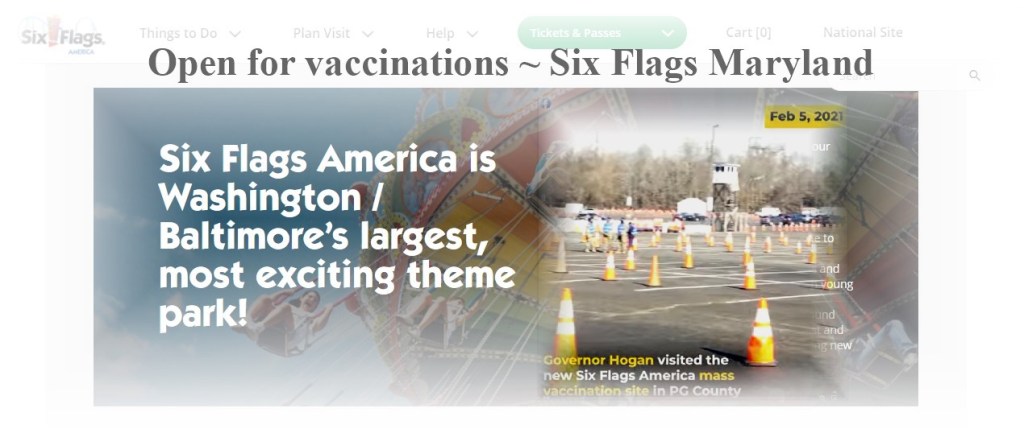 Six Flags, Maryland has stepped up to be the location of one of Maryland’s largest mass vaccination sites. It opened February 5th. Six Flags is partnering with our state and its wonderful governor, Larry Hogan. We are experiencing the rapid deployment of vaccines, protecting the citizens of Maryland and propelling us toward a safer future.