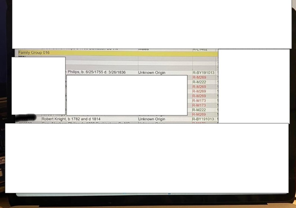 So the night – when the Big-Y results came in but nothing else had yet populated ‑ I went to back to Ancestry and typed in Abraham Philips b 1755 d 1836. Here I was – back to the same name, Philips, the surname I had somewhat ‘fought’ against acknowledging as possibly being ‘it.’ A few records came up, including the 1790 Rockingham, NC, census where Abraham Philips was listed. When I opened the page, it looked familiar but at first I didn’t know why. I had “Abraham Philips” on my mind. But when I came to the bottom of the first row, I saw “Thomas Knight.” Wait! Our Thomas Knight!