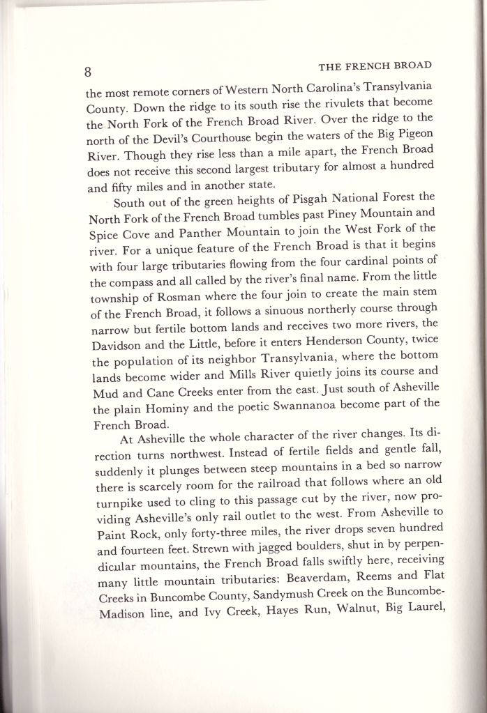 More from The French Broad of particular interest about the course of the river and the rivers, creeks and streams it meets along its way: